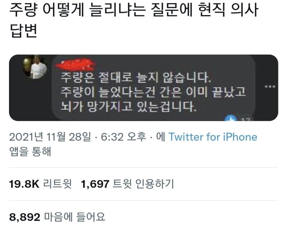 주량 어떻게 늘리냐는 질문에 현직 의사 답변'