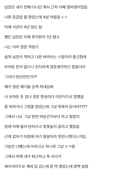 모은 돈이 없는 4년 사귄 남친과의 결말
